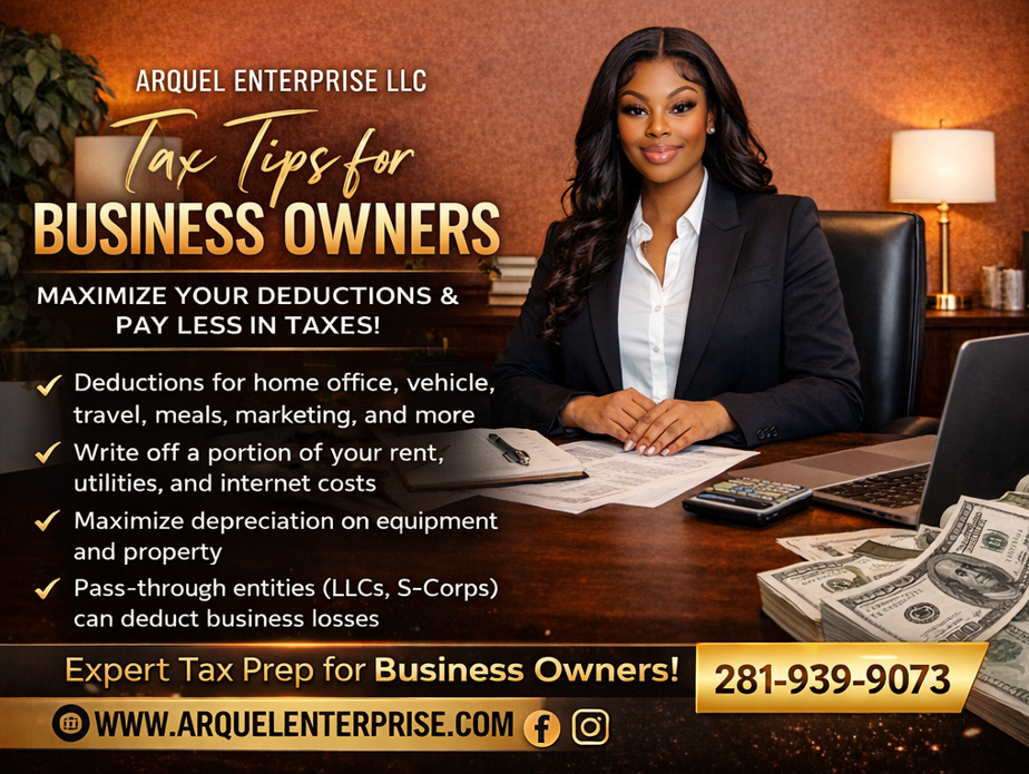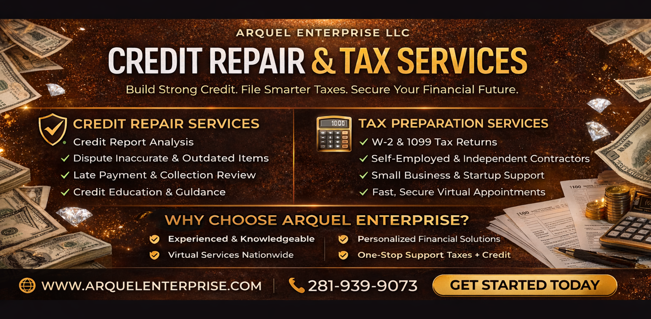 At Arquel Enterprise LLC, we specialize in professional tax preparation services designed to help individuals and self-employed clients confidently navigate tax season while maximizing their refunds. With years of experience and a commitment to accuracy, compliance, and client care, our team provides reliable solutions you can trust.